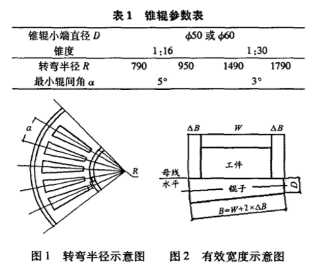 (5)轉彎段機架內側半徑R,mm;規定由以下條件決定如圖1和表1所示。